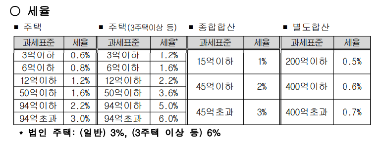 국세청 홈페이지에서 찾아볼 수 있는 22년 종합부동산세 요약표를 살펴보면, 다음과 같다.
